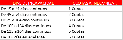 »Incapacidad temporal para trabajadores independientes: cuando el asegurado padezca una incapacidad total temporal causada por accidente o enfermedad durante la vigencia de la póliza que le impida ejecutar sus tareas y labores diarias y mientras permanezca en situación de incapacidad o hasta alcanzar el número de cuotas de la cobertura, según se indica a continuación: